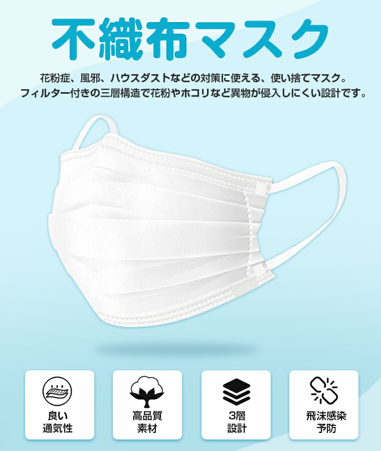 -商品ポイント- 【不織布マスク】 花粉症、風邪、ハウスダストなどの対策に使える、使い捨てマスク。